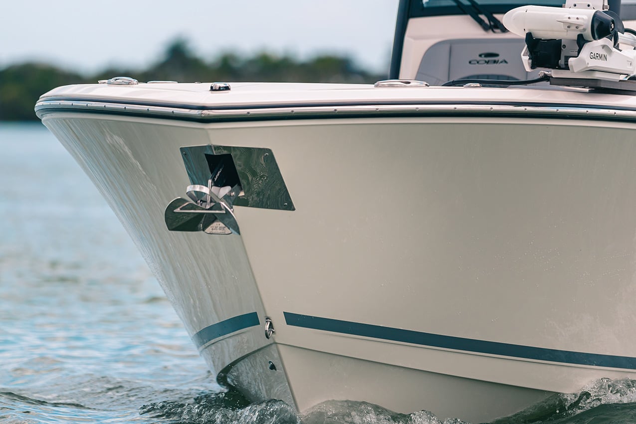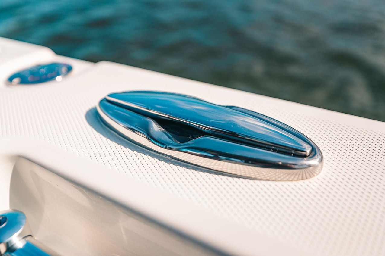 With an LOA of 28’ 5”, a beam of 9’ 11” and versatile seating options, you’ll have plenty of room for all your crew. Get to your favorite spot faster and fish all day with multiple twin engine options – up to 700 maximum horsepower. The helm can accommodate dual 16” Garmin screens, so navigating is second nature. The premium helm seat with tackle center and cooler with slide is standard on the Open or opt in for a version that includes space for more tackle, prep or an added Seakeeper 1.