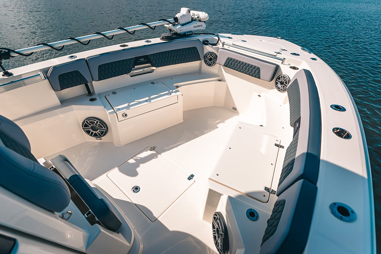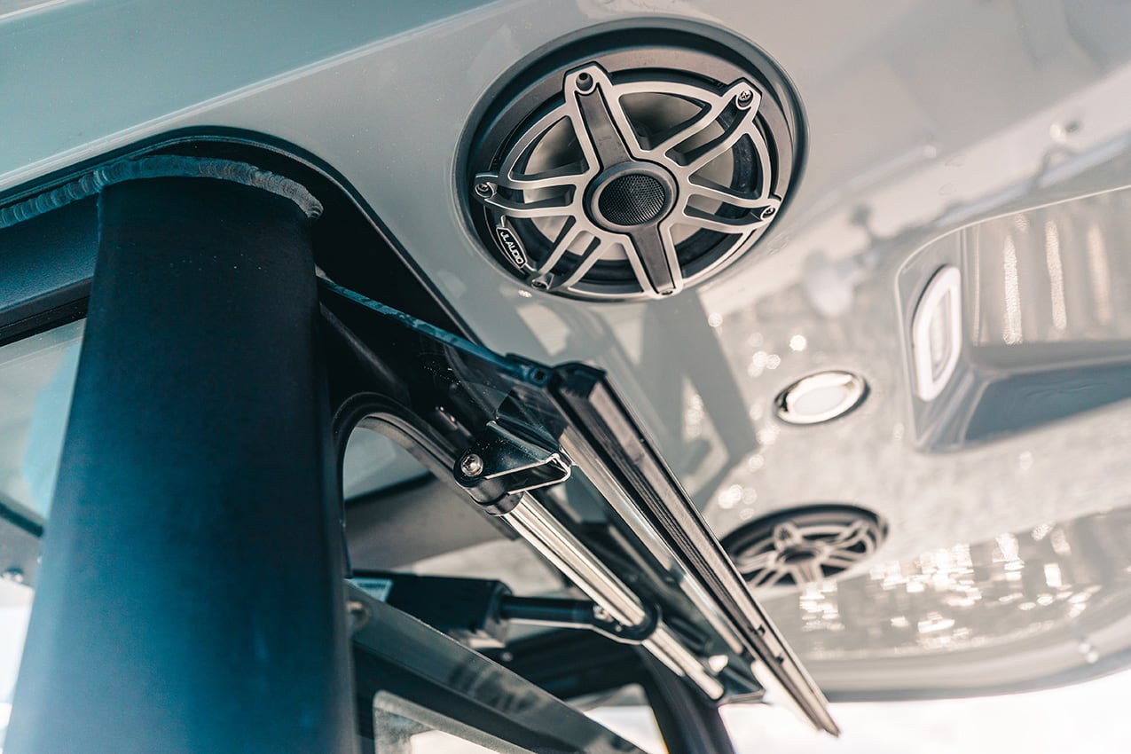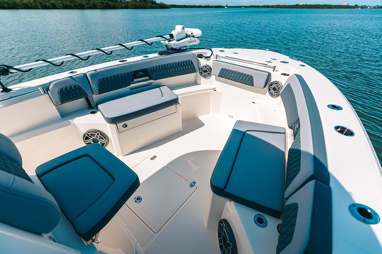 Additional upgrades include a Garmin Force Kraken trolling motor and enhanced JL Audio sound system packages with 10” subwoofers and up to 10 speakers that are strategically positioned to optimize the sound no matter where you are sitting, standing or fishing from on the boat.